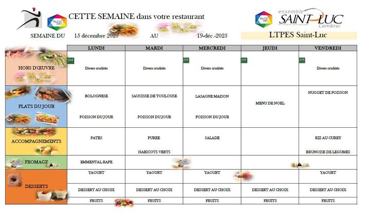 Menus restaurant scolaire Veuillez retrouver ici le menu de votre restaurant pour la semaine du 15/12/25 au 19/12/25.
