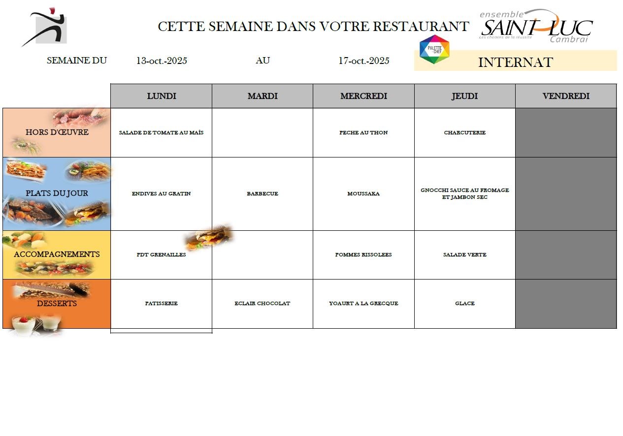Menus restaurant scolaire Veuillez retrouver ici le menu de votre restaurant pour la semaine du 13/10/25 au 17/10/25.