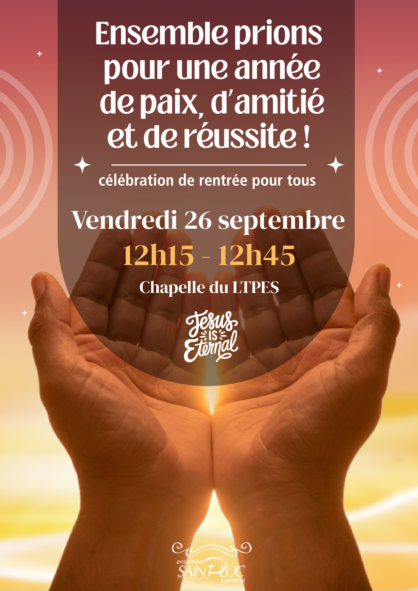 Enseignants, lycéens, collégiens, personnels et étudiants : vous êtes invités à un temps de prière pour confier cette nouvelle année à la réussite, à la paix et à l’amitié.